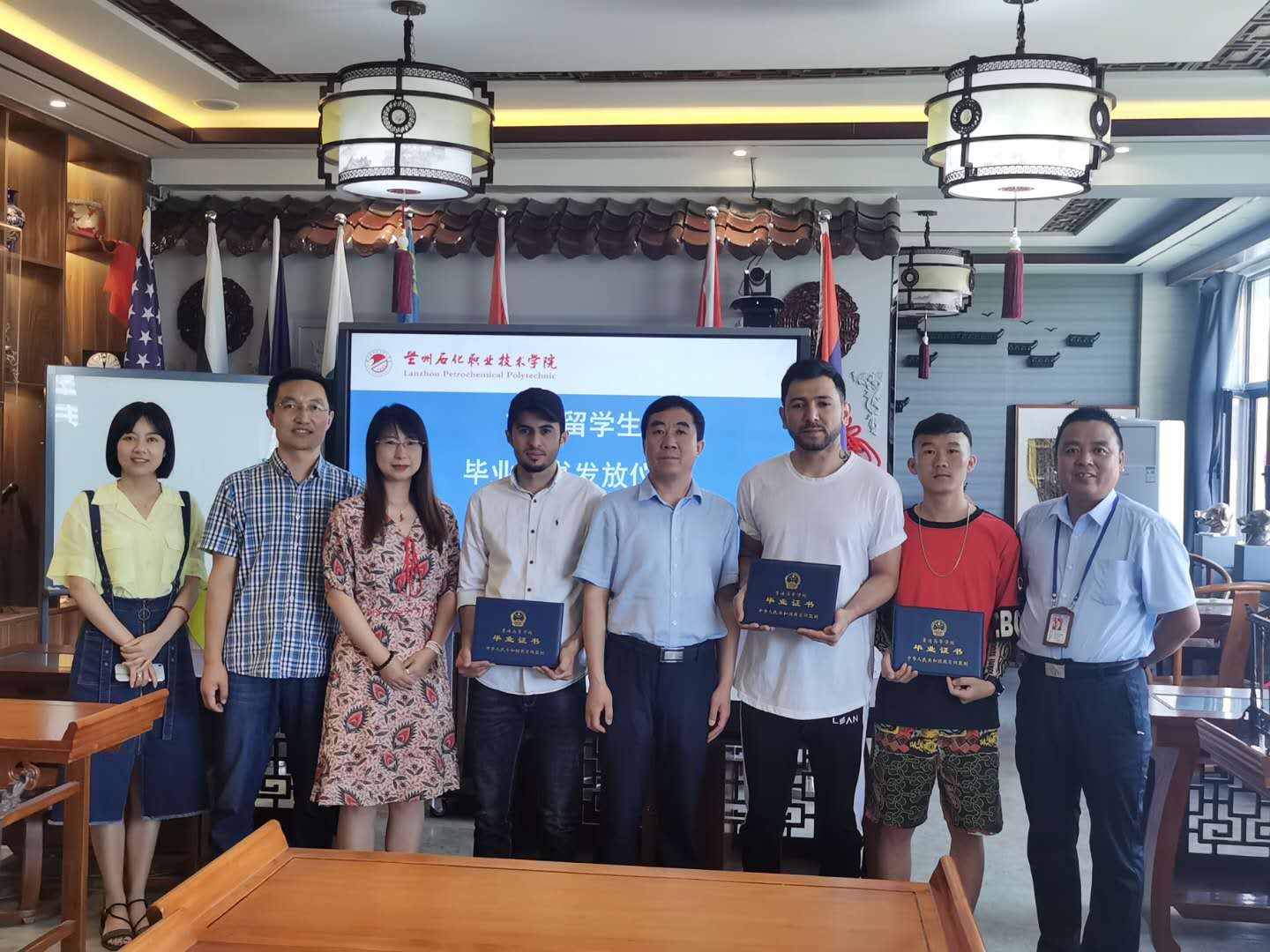 7月10日,国际教育学院在东主教6楼文化体验馆举办在校留学生毕业证书发放仪式。国际教育学院负责人及留学生班主任、辅导员参加了仪式。