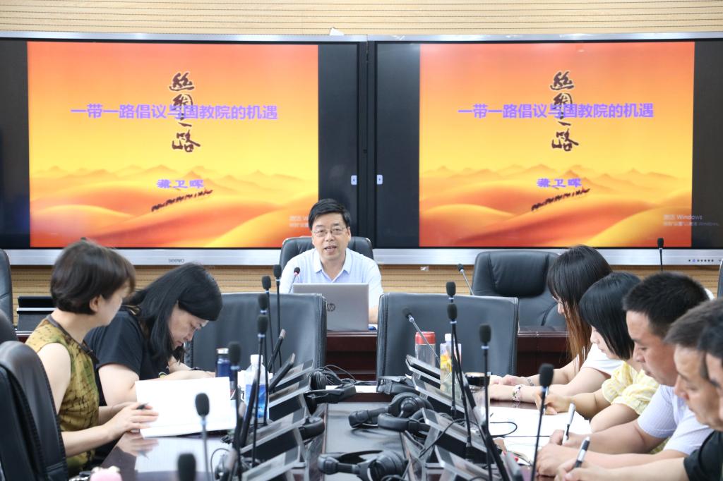在为期三天的培训中,培训内容充实,涉及方面广泛,培训效果显著。学校纪委书记蒲卫晖为学院全体教师作了题为“一带一路’倡议与国际教育学院的机遇”的专题讲座,他用生动的语言和渊博的历史知识讲述了古丝绸之路的来历及其价值内涵,解读了“一带一路”倡议提出的背景,并分析了国际教育学院未来发展的机遇、挑战和思考,他鼓励国际教育学院全体教师应做国际化、懂外交的新时代教师。