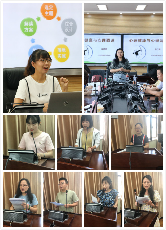 石油化学工程学院田华博士为学院全体教师分享了全国职业院校教师教学能力大赛备赛、参赛经验;马克思主义学院、人文学院、大学生健康教育发展指导中心主任周红燕为学院全体教师作了题为“防治教师职业倦怠,提升教师职业幸福”的专题讲座;学院全体教师还观看了四川大学石坚教授题为“立德树人,润物细无声,课程思政与育人”的精彩讲座和全国比赛优秀作品的视频;三位年轻教师也分享了参加全国职业院校教师教学能力大赛的作品,学院教师进行了点评和指导。最后,全院教师以小组为单位分享了此次培训的学习心得与体会,使得本次培训得以落地落实。