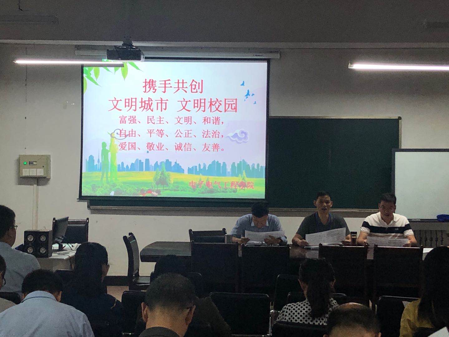 8月29日上午,电子电气工程学院在学院会议室组织开展“共创文明城市,共建文明校园”活动。电子电气工程学院领导班子及全院教职工参加了活动。