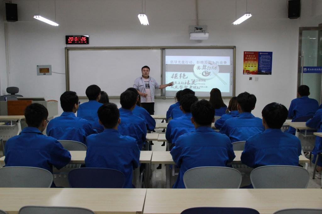 近期,汽车工程学院开展了以“光盘行动,拒绝舌尖上的浪费”为主题的系列宣传教育活动。