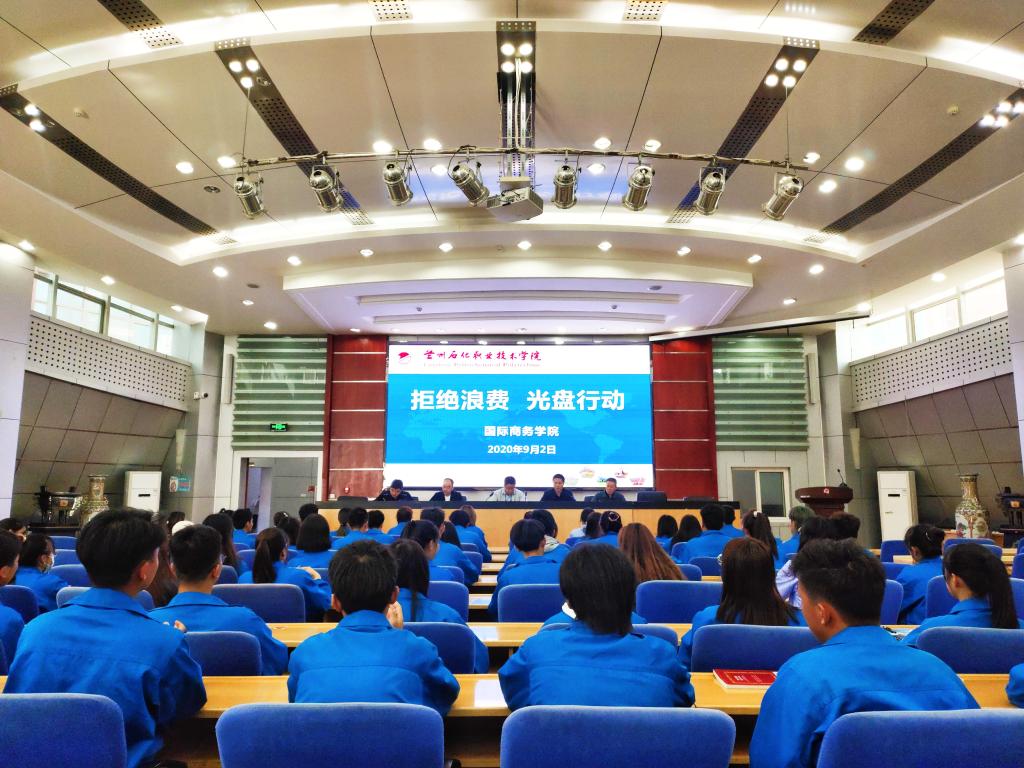 为遏制浪费、倡导节约,近日国际商务学院在学校东区多功能报告厅开展“拒绝浪费,光盘行动”主题活动,国际商务学院领导、辅导员以及百余名学生代表参加了活动。