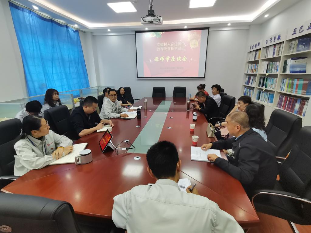 会上,学院负责人为全体教师送上了节日的祝福,并对教师们提出了下一步教书育人工作的要求和希望。他强调,要在教学过程中融入对学生的思想政治教育,要对贫困学生从学习到生活的各个环节进行关心和帮助等。座谈环节,教师们踊跃发言、气氛热烈,老教师回顾了学校的发展历史、感慨万千,新老教师畅谈学院教育事业取得的新进展新成就,共同畅想学校美好的未来。老教师对青年教师从做人、做事、工作、生活方面都给出了悉心的指导和中肯的建议,对青年教师成长成才提出了殷切的希望。