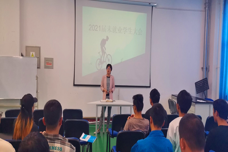 应用化学工程学院负责人首先把学院各专业就业情况进行了通报。随后,对现场学生进行了调研,了解目前未就业学生的真实想法和困难,并对学生提出的问题一一进行了解答。最后她向同学们提出了四点要求:一是坚持完成学业,夯实基础;二是积极就业、诚信就业;三是做好自我评估,无论选择就业还是专升本提升学历都要脚踏实地、不断努力;四是将来就业,先在就业单位夯实技能基础,再去谋求更好的发展并告诫学生应先就业再择业。