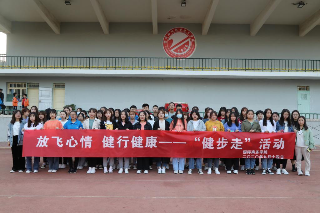 为进一步丰富校园文化氛围,推广运动强身理念,引导学生锻炼体魄、丰富生活、增进团结。近日,国际商务学院在学生中开展“健步走”活动,全体在校生参加了活动。
