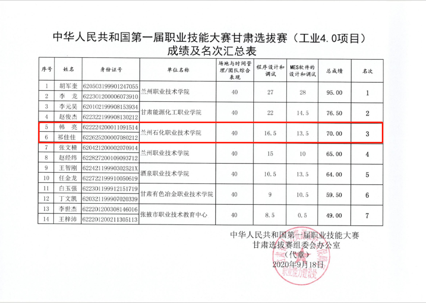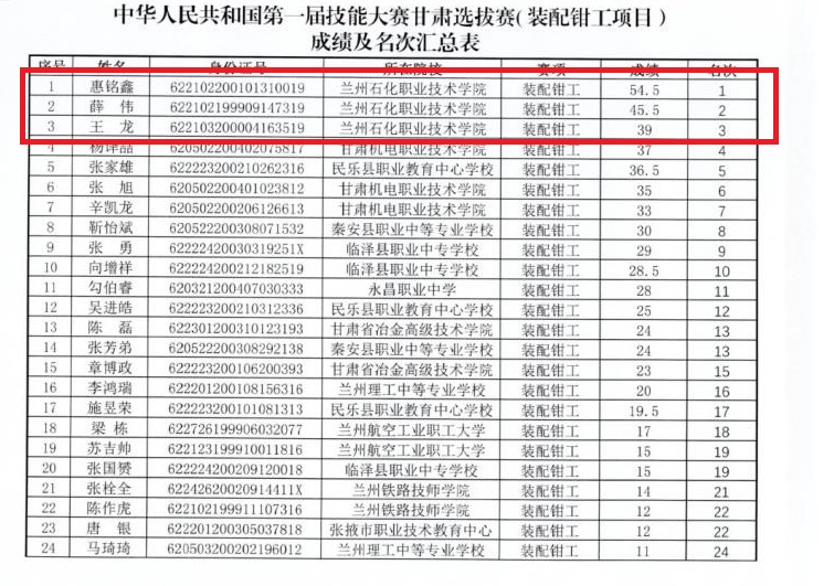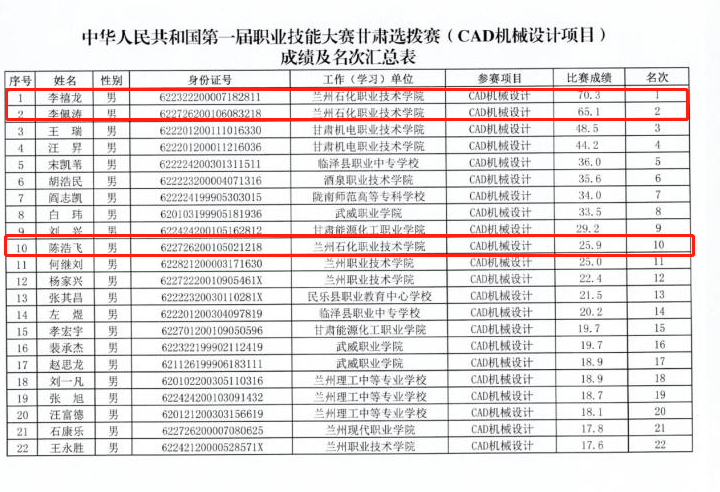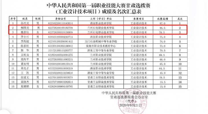 9月12日至21日,中华人民共和国第一届职业技能大赛甘肃选拔赛在甘举办,我校机械工程学院派出七支代表队共19人参加了工业4.0、数控车、数控铣、CAD机械设计、工业设计技术、装配钳工和焊接七个项目的角逐,最终荣获一等奖3项、二等奖8项、三等奖4项。