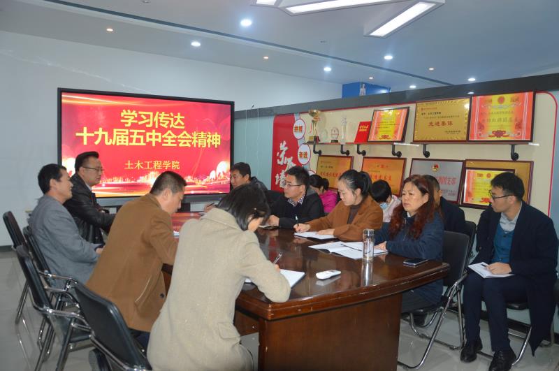 10月30日,土木工程学院组织学习中国共产党第十九届中央委员会第五次全体会议精神,深入学习领会习近平总书记重要讲话精神。土木工程学院领导及教工党支部的老师参加了活动。
