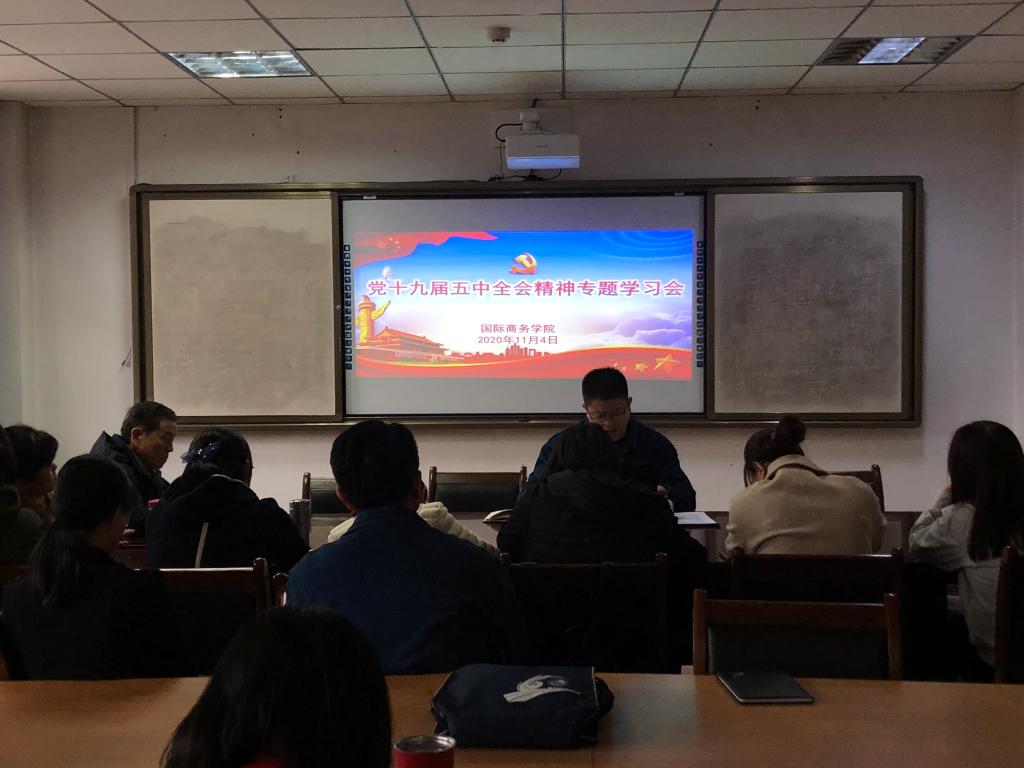 11月4日,国际商务学院分别召开教职工大会和学生大会,对党的十九届五中全会精神进行全面深入学习。