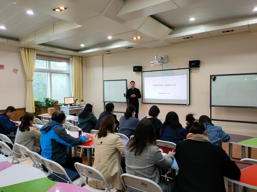 根据《兰州石化职业技术学院 2020 年职业教育活动周实施方案》(院发〔2020〕166 号)文件要求,为提升思政课教师应用信息技术水平、推动思政课“混合式教学模式”全面开展,11月4日下午,马克思主义学院邀请超星公司思政事业部经理任欢在马克思主义学院团辅室为全体思政课教师开展了“超星智慧马院一体化解决方案”培训会。马克思主义学院负责人及全体思政课教师参加了培训。