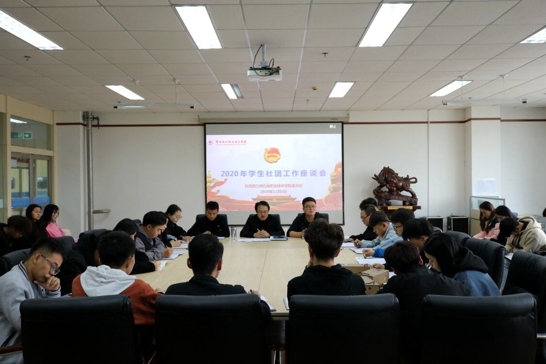 11月5日下午,学校在大学生活动中心会议室召开2020年学生社团工作座谈会。团委老师,学生社团指导教师代表及学生社团负责人代表参加会议。