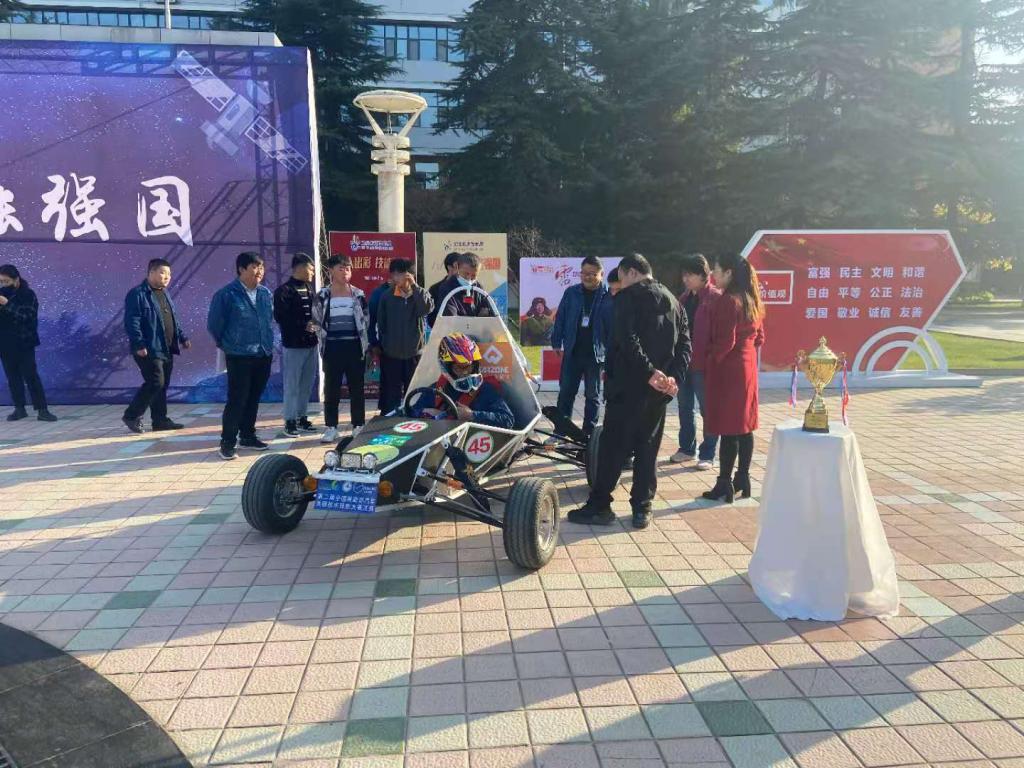 11月9日,汽车工程学院在东区广场开展“职业教育活动周”主题专项活动,“新能源轻量化赛车”亮相本次活动,党委副书记黄义仿等、一汽解放汽车销售有限公司校企合作负责人周雪霞一行3人等相关专家参加了活动。