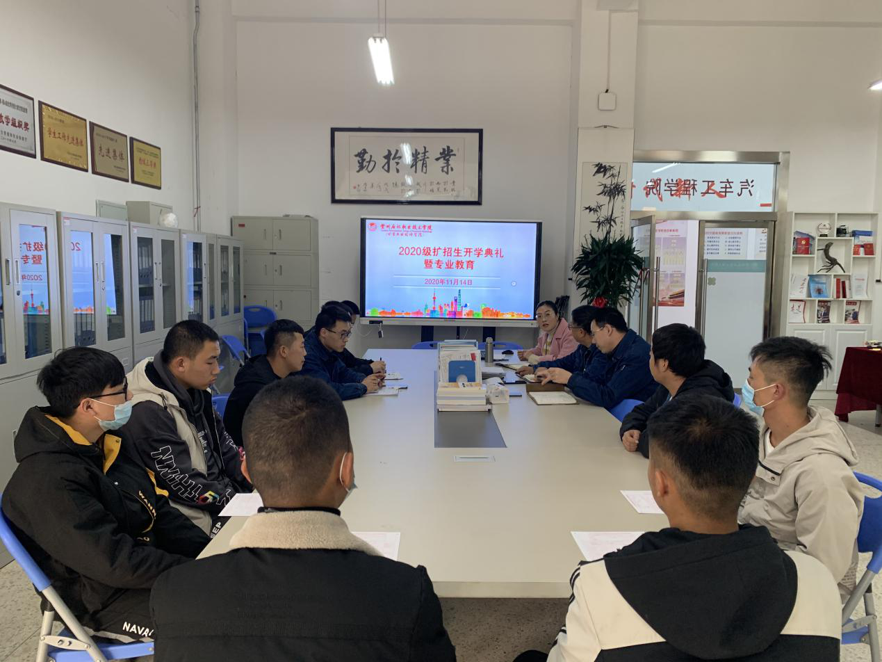 11月14日下午,汽车工程学院在五中心一楼召开2020级扩招生开学典礼暨专业教育,学院负责人、教研室主任及班主任参加了会议。