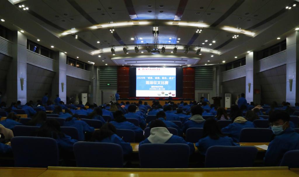 11月15日晚,国际商务学院在报告厅举办“感恩、诚信、励志、成才”征文比赛。2020年获资助和受表彰近200名学生参加比赛。