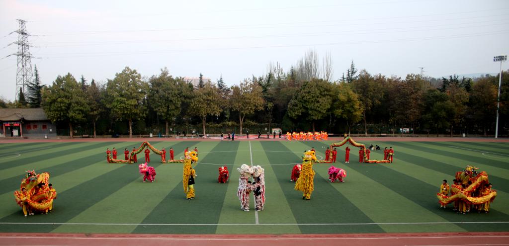 11月13日,由西固区环卫中心举办的以“净土蓝天文明城,幸福健康环卫人”为主题的首届职工运动会在西固区体育场拉开帷幕,开幕式在西固区体育场隆重举办,我校龙狮协会受邀参加开幕式表演。我校4 条龙8头狮子共60余名队员在团委老师、龙狮协会指导教师的带领下,前往西固区体育场参加表演。
