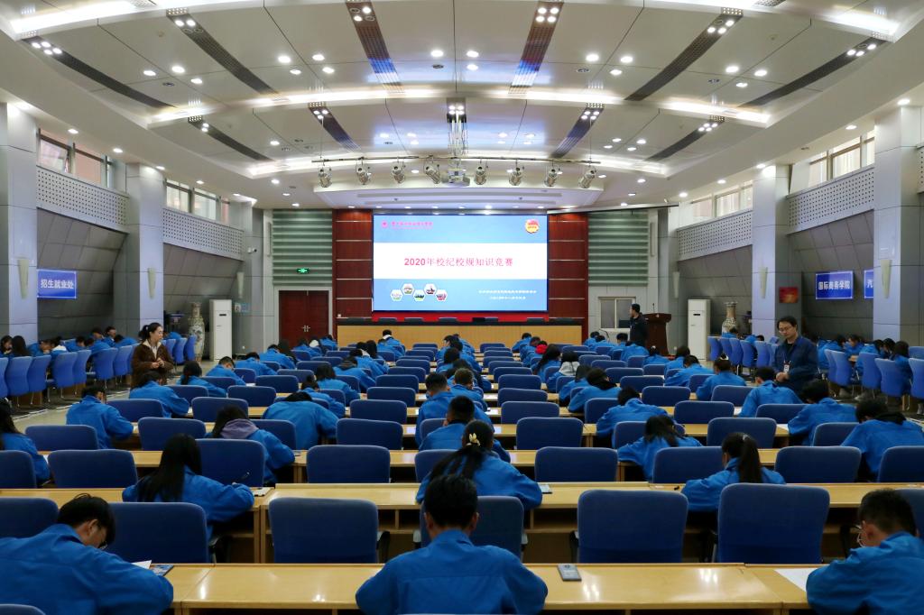 知识竞赛分为网络答题初赛和现场竞赛决赛两个环节,经过10个学院前期初赛,复赛,共有4760余名学生参加了答题,最终有120名选手脱颖而出进入决赛。 决赛以《普通高等学校学生行为准则》、《兰州石化职业技术学院学生工作手册》、《兰州石化职业技术学院违纪学生处分条例》、十九届五中全会精神、时事热点等相关内容为题,通过填空、选择、简答、论述等题型展开了竞赛,旨在进一步提升广大学生的综合素养,增强我校学生的守纪和践行意识。竞赛现场秩序井然,同学们态度端正,认真作答,积极参赛。