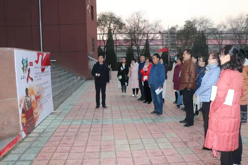 首先,党总支负责人介绍了“铁人”王进喜的生平事迹。通过了解王进喜的生平事迹,给大家再现了建国初期在物质贫乏、条件艰苦的年代中,以王进喜为代表所展现出的伟大精神世界。带领我们追忆了老一辈石油工人艰苦创业、勇于吃苦的情景,展现了铁人王进喜忘我拼搏、无私奉献的精神。接着,党总支负责人带领全体教工党员来到学校图书馆门口的“铁人”王进喜塑像前,对“铁人”王进喜进行缅怀仪式。重温了他“为国分忧,为民族争气”的爱国主义精神,“宁可少活20年,拼命也要拿下大油田”的忘我拼搏精神,“有条件要上,没有条件创造条件也要上”的艰苦奋斗精神和“甘愿为党和人民当一辈子老黄牛”埋头苦干的奉献精神。