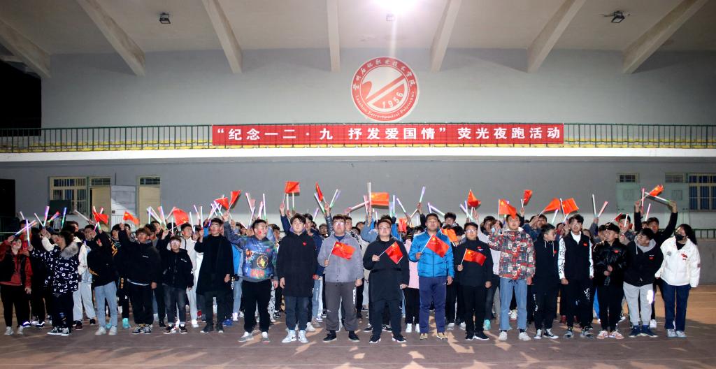12月9日晚,团委在东区操场举办“纪念一二·九、抒发爱国情”荧光夜跑活动。