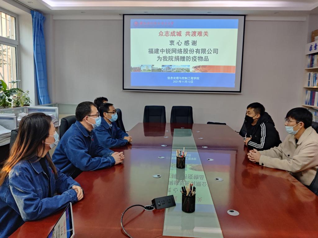近日,学校现代学徒制合作企业福建中锐网络股份有限公司西北区域经理慈兆瑞,代表总公司为我校信息处理与控制工程学院捐赠10000只医用外科口罩等防疫物品,为信息处理与控制工程学院师生有序开展疫情防控工作提供了物资保障,一并送来了问候和温暖。