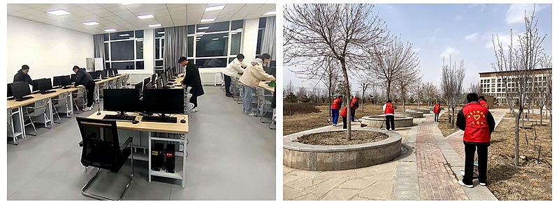 雷锋精神,人人可学;奉献爱心,处处可为。活动过程中,志愿者身穿红色马甲,以“弘扬雷锋精神,引领青年风尚”为主旨,一丝不苟,仔细捡拾周围垃圾,使得重技楼实训室及周边公共区域焕然一新,大家打扫卫生的场景,同时也成为了石化大学里一道靓丽的风景线。