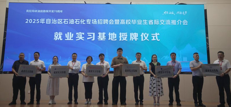 7月18日,程小红一行出席由自治区人力资源和社会保障厅、自治区教育厅与克拉玛依市人民政府联合主办的“才聚油城·兴疆逐梦”2025年自治区石油石化专场招聘会暨高校毕业生省际交流推介会。会上,我校向新疆华澳能源化工股份有限公司授予“就业实习基地”铜牌,未来双方将在人才培养、实习基地共建等领域持续发力。启动仪式后,我校教师团队积极与现场招聘企业对接交流,精准把握用工需求,并向企业发放就业邀请函。