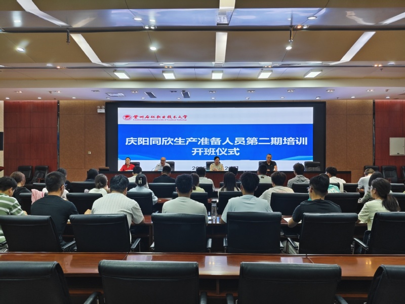 8月20日上午,庆阳同欣石油科技股份有限公司50万吨/年轻烃深加工项目生产准备人员培训班开班式在西固东校区石化厅举行。庆阳同欣石油科技股份有限公司培训领队郑伟、成人教育与培训学院、石油化学工程学院、招生就业处负责人及全体参训学员共同参加开班仪式。