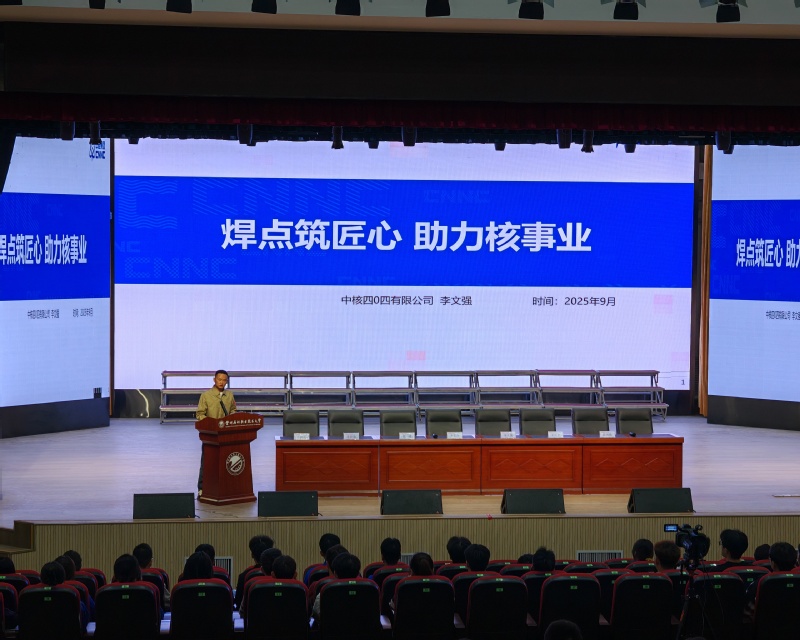 全国五一劳动奖章获得者、全国模范退役军人、全国劳模、中核四0四有限公司焊工高级技师李文强以“焊点铸匠心 助力核事业”为题,从个人成长、攻坚克难、公司人才培养体系、何为工匠精神等方面全面介绍了自己的成长历程,生动诠释了“择一事,终一生”“千万锤,成一器”“偏毫厘,不敢安”的大国工匠精神。最后,他寄语同学们:奋斗的青春最美丽,技能报国正当时。愿我们都能以匠心筑梦、以技能报国,在实现中华民族伟大复兴的壮阔征程中,绽放属于自己的青春光彩!
