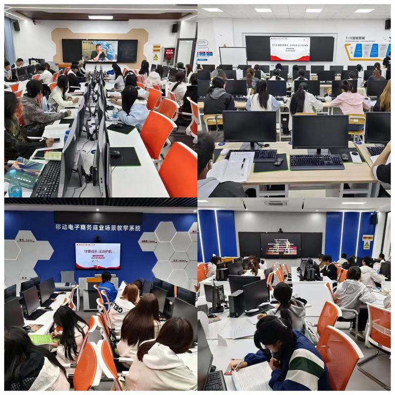 9月27日晚,法治教育之火在全院各班接力传递。在悦技楼4楼跨境电商实训室等多个教室,学院组织各班级召开了“守望成长 法治护航”主题班会。班会上,辅导员和班委们通过案例分析、法条解读、情景模拟等生动形式,将与学生切身相关的网络安全、反诈防骗、知识产权、劳动保障等法律知识融入其中,使法治教育更加贴近学生、贴近生活、贴近实际。