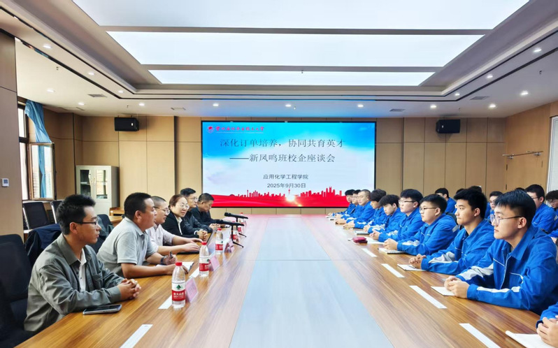 金秋送爽,硕果飘香。在国庆、中秋双节来临之际,为深化校企合作,创新人才联合培养模式,共育高素质技术技能人才,9月30日上午,学校在东校区三中心九楼会议室召开新凤鸣学徒制班校企座谈会。新凤鸣集团股份有限公司人力资源部主管沈佳斌,学校国际交流与合作办学处、应用化学工程学院负责人及新凤鸣应用化工241班全体学生参加会议。