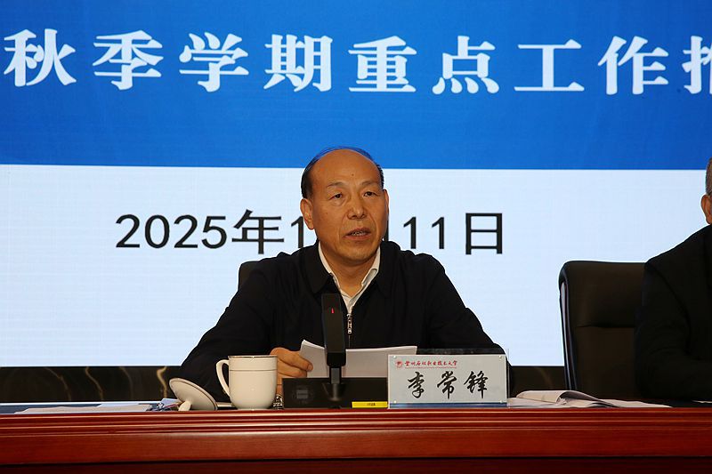 李常锋作总结讲话。他指出,本次会议聚焦“双高计划”建设、“十五五”事业发展规划、建校70周年活动筹备、高等职业学校办学能力评价和2025年度重点工作等事关推动学校提质增效、高质量发展的战略行动和重要任务,是在学校发展的新历史方位和关键阶段召开的一次十分重要的会议。他强调,全校上下要牢固树立“全局性”发展观和“一盘棋”思维,进一步增强责任感、紧迫感和使命感,以主动作为强化主人翁意识,以协同联动凝聚攻坚合力,以只争朝夕的精神状态和一往无前的奋斗姿态,用一项项丰硕的成果、一个个突破的指标,兑现对高质量发展的承诺,以实际行动推动建设“西部旗帜、全国一流、国际知名”的高水平职业技术大学。