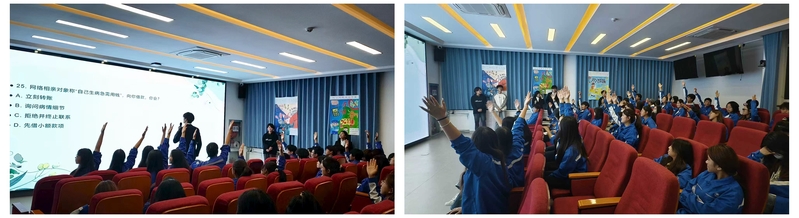 比赛过程中,各班级代表队展开激烈角逐,现场气氛紧张而热烈。在“抢答挑战”环节,选手们思维敏捷、反应迅速,展现出扎实的知识储备;随后的“情景模拟”环节则将竞赛推向高潮,通过模拟“冒充客服退款”“虚假中奖诈骗”等真实案例,考验了选手们在面对诈骗话术时的临场应变与处置能力。为扩大活动覆盖面,情景模拟环节还穿插了互动问答,台下学生踊跃参与,争相作答,在寓教于乐的活跃氛围中,进一步普及了“不听、不信、不转账”等关键反诈知识,起到了良好的警示教育效果。