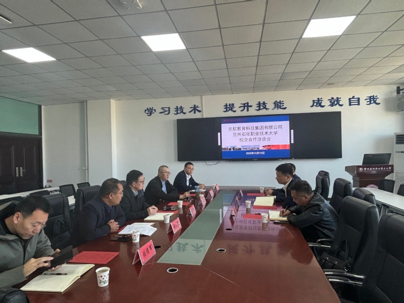 随后,董本清介绍了集团的发展历程、核心业务及在产教融合领域的成功案例。他表示,东软教育始终致力于推动教育与产业的深度融合,围绕信息技术产业发展需求,构建了“教育 + 产业” 双轮驱动的发展模式,形成了涵盖课程体系建设、实践教学平台搭建、师资培训、学生就业指导等全链条的服务体系。兰州石化职业技术大学在石油化工、信息技术及汽车工程等领域的办学优势与集团的技术资源高度契合,期待与学校在专业共建、课程开发、实训基地建设、订单式人才培养等方面开展全方位合作,共同培养符合产业发展需求的技术技能人才。