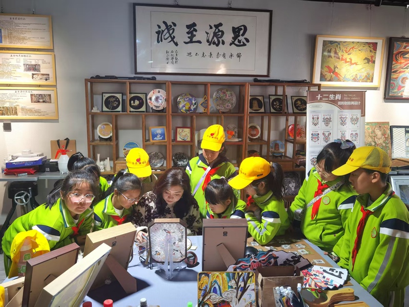在理论讲解之后,便是实践操作环节。同学们热情高涨,纷纷动手尝试。他们小心翼翼地拿起工具,专注地进行掐丝、扎染,每一个步骤都力求完美。在老师们的耐心指导下,原本略显生疏的动作逐渐变得熟练起来。经过两个小时的努力,一件件独具创意的作品在同学们手中诞生。看着自己的劳动成果,同学们脸上洋溢着自豪的笑容,成就感满满。