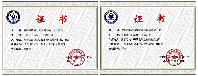 根据本次征集活动的基本要求,经过研究会组织专家评审,最终评选出高影响力论文25篇。我校学报刊发的《基于机器视觉Open MV的魔方机器人研究》《基于无线WIFI的空调监测控制系统设计》两篇文章成功入选首届高职高专期刊高影响力论文案例库。