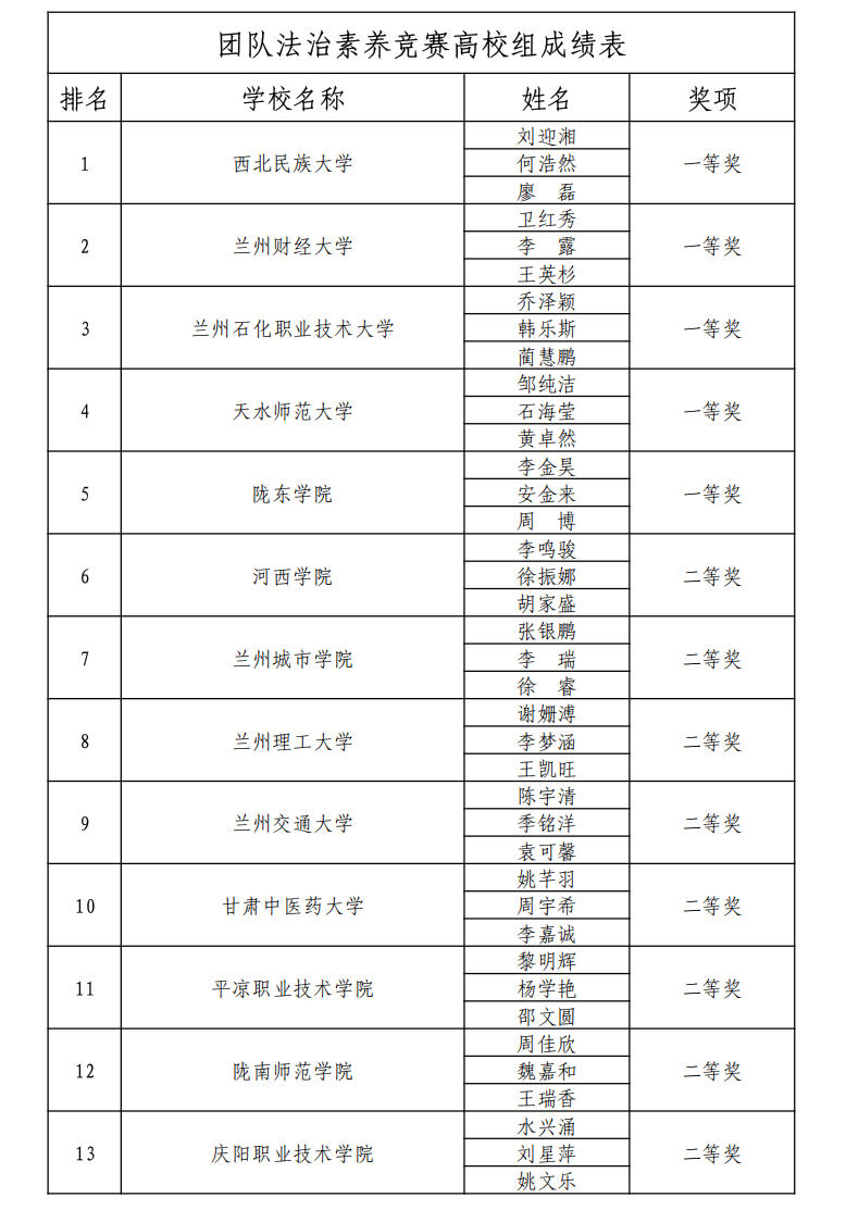 10月23日,第十届全国学生“学宪法、讲宪法”活动甘肃省选拔赛在甘肃政法大学落下帷幕。由我校马克思主义学院教师指导的多名学生表现优异,荣获高校组(本专科)法治素养竞赛团体赛一等奖、个人演讲赛二等奖。
