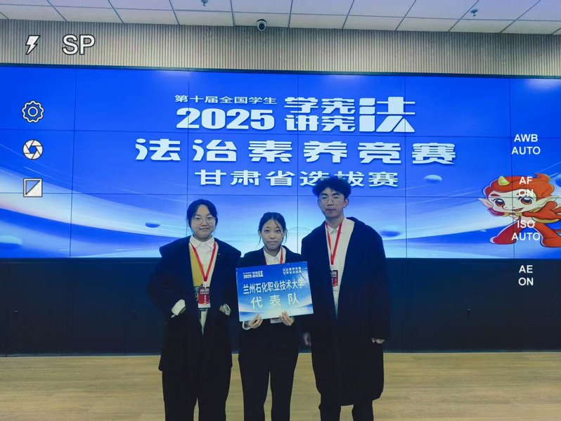 本届大赛由甘肃省教育厅主办、甘肃政法大学承办,吸引了来自全省大中小学的优秀选手同场竞技。在兼具综合性与挑战性的团队法治素养竞赛赛项中,由王悦老师指导的学生团队乔泽颖、蔺慧鹏、韩乐斯,凭借深厚的知识储备、敏捷的思辨能力和出色的团队协作,从众多参赛队伍中脱颖而出,以总分第三的成绩勇夺高校组(本专科)一等奖,我校也成为该赛项中唯一获此殊荣的高职院校。由孟彦君老师指导的学生杨文娜以饱满的热情和富有感染力的语言,围绕宪法与个人、社会、国家的关系,讲述了生动的法治故事,抒发了真挚的法治情怀,最终荣获高校组(本专科)二等奖。