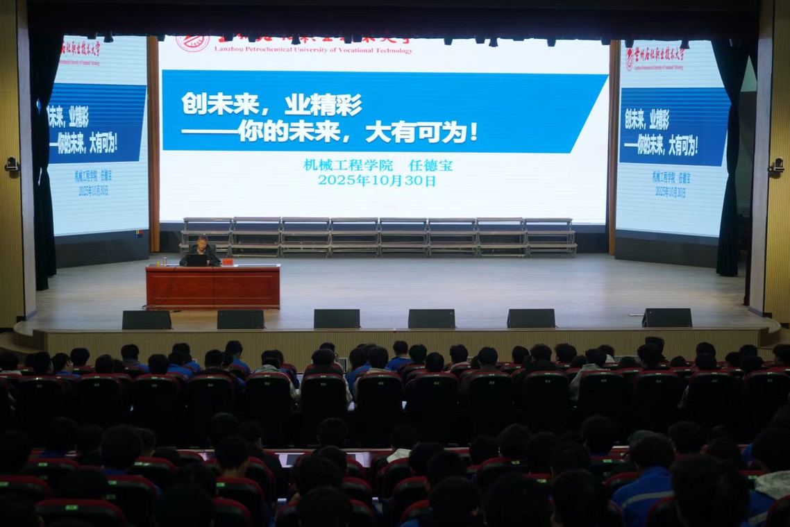 10月30日,机械工程学院在西固东校区礼堂组织开展了以“创未来,业精彩,你的青春大有可为”为主题的讲座。24、25级部分同学参加了讲座。