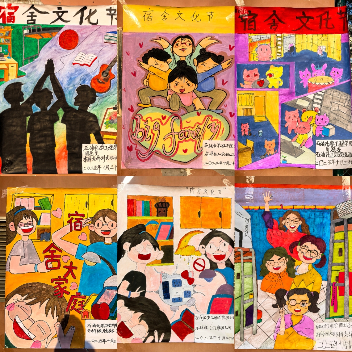 为进一步丰富学生校园生活,营造和谐友爱的住宿氛围,展现新时代石化学子的创意活力与团队协作精神,石油化学工程学院联合 “一站式” 学生社区于 2025 年 11月3日在西校区举办了宿舍文化节海报设计大赛。