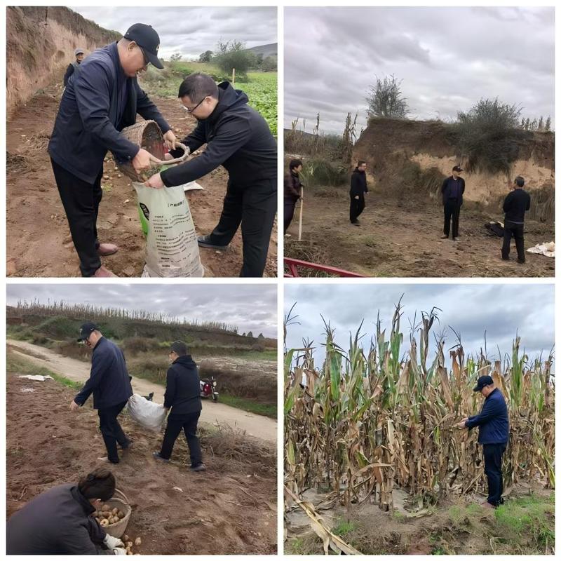 入秋以来,张家川回族自治县连续降雨导致秋收工作受阻,今年玉米与土豆的收获时间较往年有所推迟。榆树村驻村帮扶队深入田间地头,耐心向农户询问今年的收成情况、详细调查秋收中存在的实际困难、全面摸排农作物受灾情况,并帮助劳动力不足家庭开展秋收工作。然后,与村两委共同探讨帮助农户解决秋收中实际困难的措施。