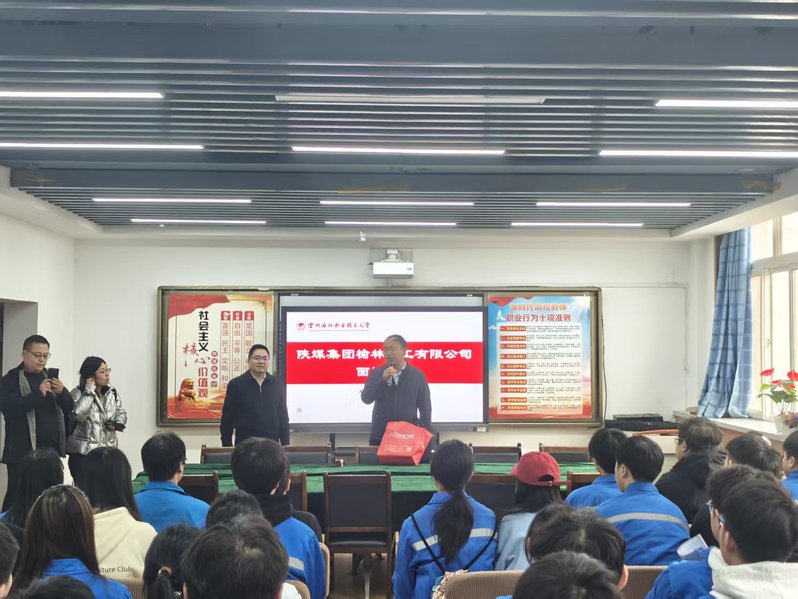 座谈结束后,陕煤榆林化学公司面向学院2026届毕业生召开专场宣讲会。宣讲现场,企业人力资源部经理全面介绍了公司的企业文化、薪酬福利体系、岗位设置、晋升发展路径等学生关心的内容。在互动答疑环节,同学们踊跃提问,就岗位安排、技能培训、转正机会、工作地点等问题与企业代表进行深入交流,现场气氛热烈活跃。宣讲会尾声阶段,众多同学结合自身专业与职业规划,向企业投递了就业简历,部分同学现场与企业达成初步就业意向。