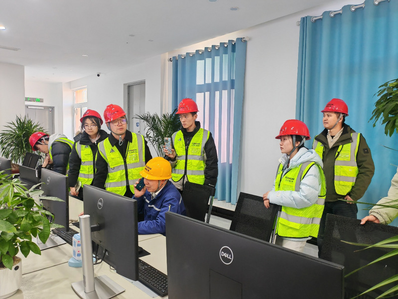 导学团队师生此行,正是为了亲身感知、深入学习这一将国家战略落于实处的“绿色魔法”。他们深入中央控制室和生产现场,细致观摩了从固废接收、预处理到投料入窑的全流程,与企业工程师就固废特性对水泥熟料质量的影响、污染物排放控制、能源消耗及碳减排效益等核心问题进行了深入探讨。