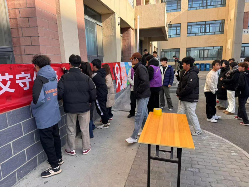 竞赛结束后,防艾横幅签名活动在7号公寓前顺利开展。“以爱抗艾守健康,青春无‘碍’向光行”的醒目横幅前,学生们有序排队,郑重地签下自己的姓名。一笔一画不仅是对健康生活的郑重承诺,更是青年学子主动承担防艾社会责任的鲜明表态。