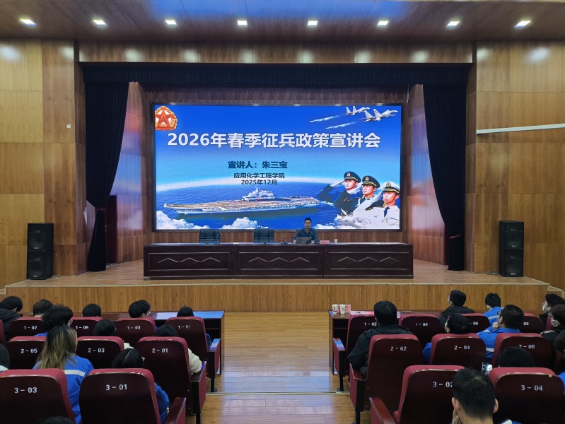 为积极响应国家征兵号召,扎实推进征兵宣传工作,引导毕业生投身军营、报效祖国,12月11日晚,应用化学工程学院在西校区多功能报告厅组织召开了2026年春季征兵政策宣讲会。宣讲会面向学院全体2026届应届毕业生,旨在帮助同学们深入了解最新征兵政策,激发参军热情。