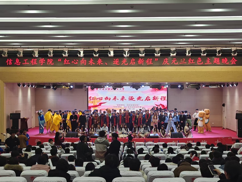 12月11日晚,信息工程学院举办“一学五查双促进”素质提升月活动总结暨“红心向未来,逐光启新程”文艺汇演,学院师生齐聚现场,共赴一场红色精神与青春活力交融的文化盛宴。