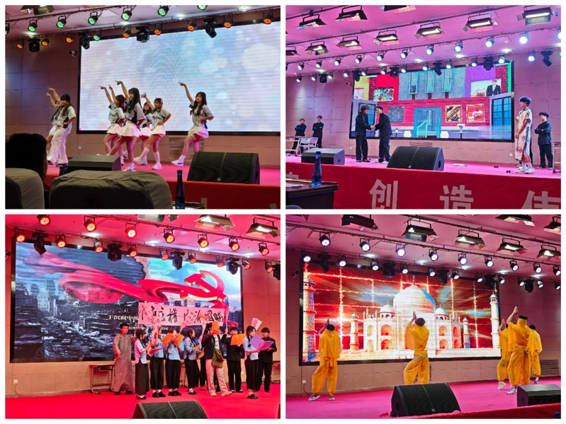 文艺汇演以“红心向党、矢志报国”为内核,紧扣“传承红色精神、彰显青年担当”的主线,通过舞蹈、小品、武术、话剧等多元艺术形式,将红色内涵与青春表达深度融合。晚会现场,舞蹈社以动感舞姿拉开序幕;小品《谈判专家》用幽默台词传递青春态度;民族舞蹈生动展现民族文化魅力;话剧《千山万水盼归乡》《破晓的呐喊》生动演绎红色故事,唤起师生的家国情怀;武术社《侠影绘山河》尽显少年意气;歌曲《平凡之路》以旋律传递青春理想。晚会尾声,经典曲目《相亲相爱》的旋律准时响起,全体参演人员有序齐聚舞台之上,两列队伍分列观众席过道两侧,与舞台上的表演者遥相呼应,全场观众自发跟唱,歌声与掌声交织,将晚会氛围推向高潮。