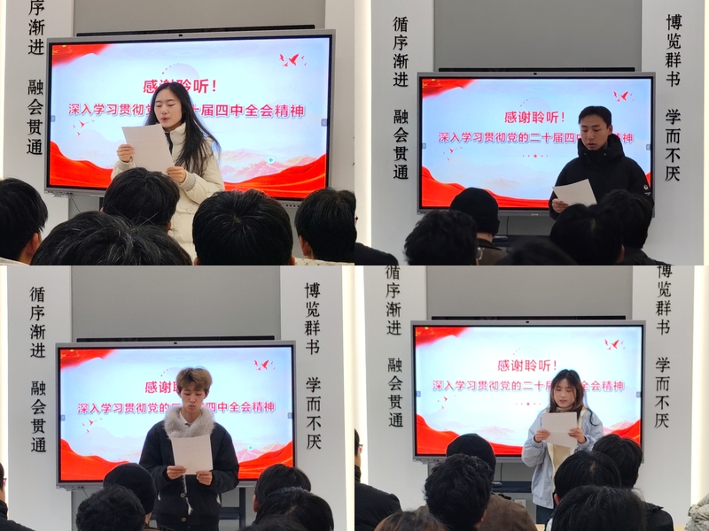 12月19日下午,“一站式”学生社区组织师生共学党的二十届四中全会精神。学习活动邀请学校思政教师张璐做辅导。学生社区教师、学生干部、学生代表等40余人到场聆听。