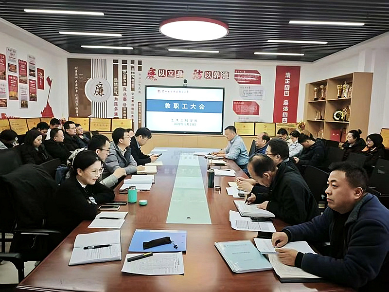 12月23日下午,土木工程学院全院教职工大会在学院会议室顺利召开。会议全面总结学院本年度各项工作成效,深入分析当前学科发展面临的新形势与新挑战,系统部署下一年度重点工作任务。学院党政领导班子成员及全体教职工参会,会议由学院党委负责同志主持。