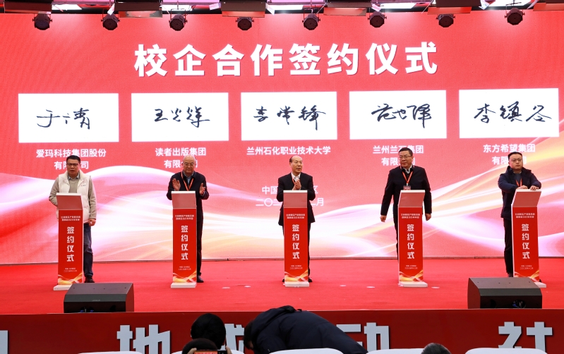 会上,兰州石化职业技术大学分别与兰州兰石集团有限公司、东方希望集团有限公司、读者出版集团有限公司、爱玛科技集团股份有限公司签署战略合作协议。