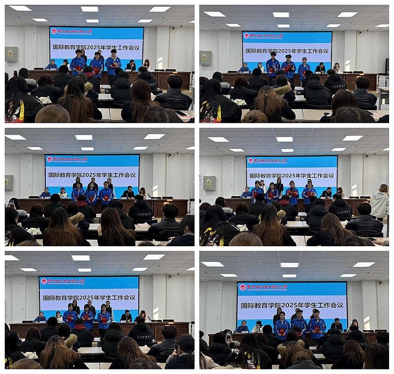 为全面总结2025年学生工作成效,表彰先进典型,扎实推进期末各项工作,营造优良考风学风,12月25日,国际教育学院在重技楼405室召开了2025年学生工作会议暨期末考试动员会议。学院领导班子、辅导员、班主任及全体学生参加了会议。