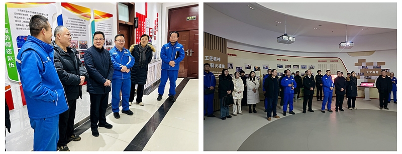 活动伊始,学院师生一行在企业负责人陪同下,先后实地走访企业党建阵地、产业工人队伍建设主题展馆、实训基地及生产工厂,通过沉浸式参观交流,深入学习企业党建工作的特色做法,系统了解企业从初创到壮大的发展历程,直观感受企业在技术研发、产业升级等领域的创新突破。