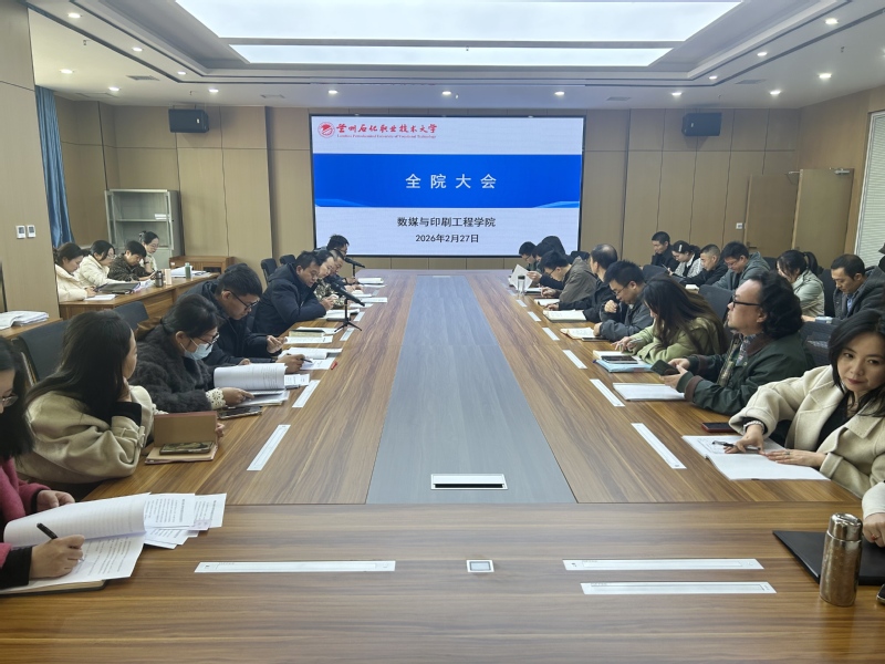 2月27日上午,数媒与印刷工程学院在第三工业中心九楼会议室召开2025-2026学年第二学期期初全院教职工大会,全体教师参会,学院负责人主持会议并统筹部署新学期重点工作。